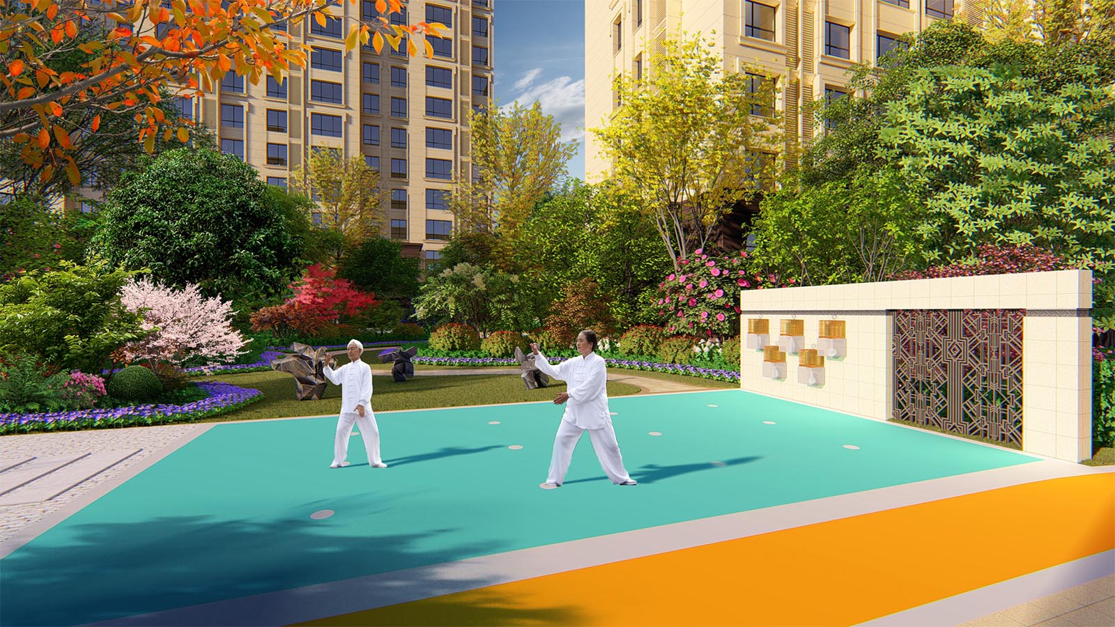 旨在創造一個完善的室外健身活動區,豐富整個社區的功能屬性,讓業主走出家門,享受健身、鍛煉的樂趣,并產生良好的景觀視覺效果。